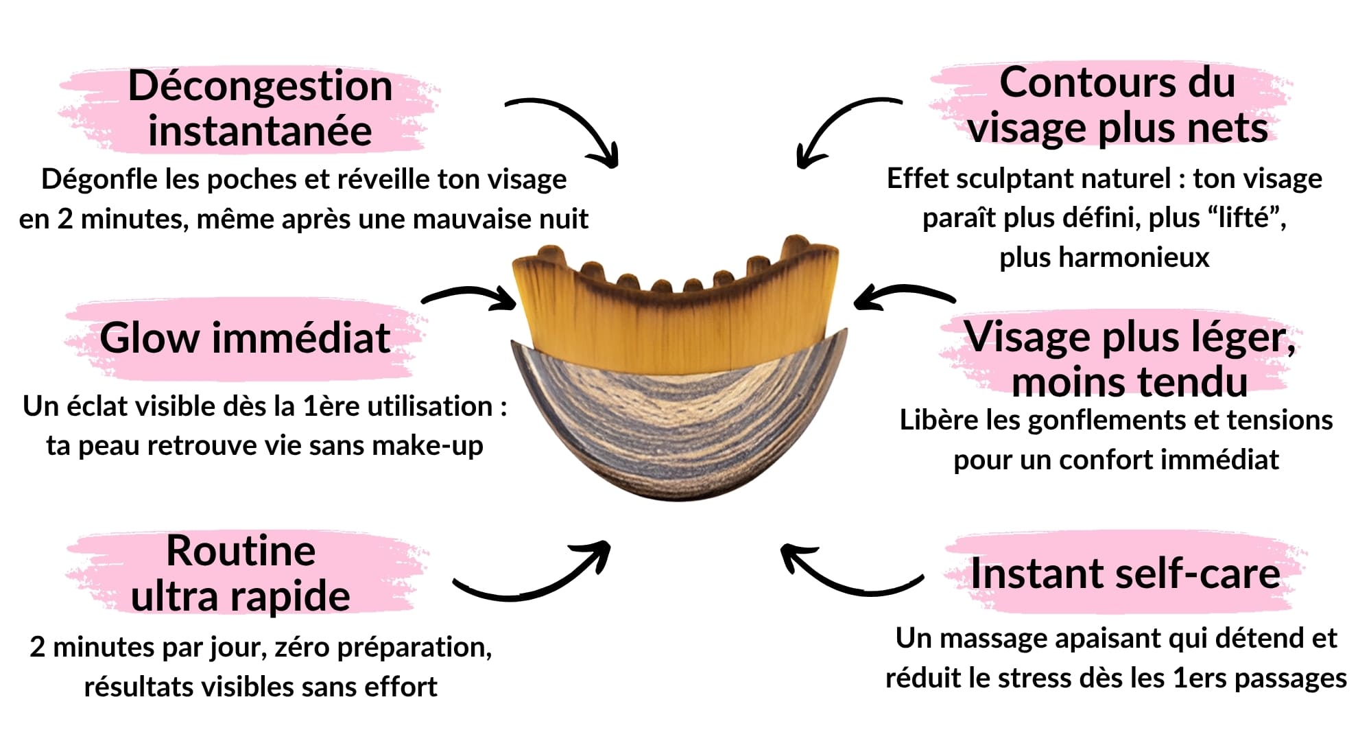 Ses fibres ultra-douces stimulent la microcirculation, libèrent les tensions et redéfinissent subtilement l’ovale du visage.